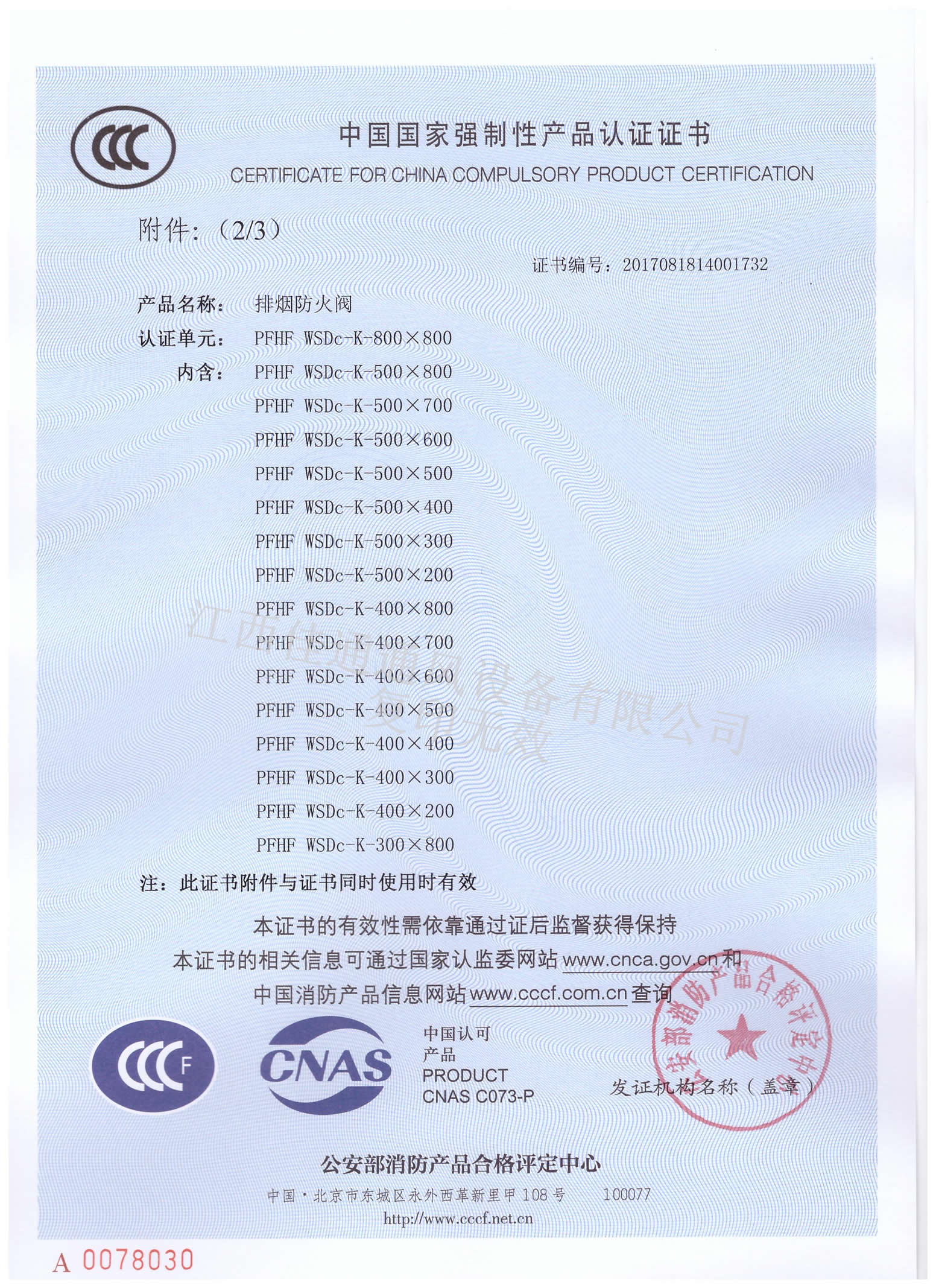 當(dāng)前位置:風(fēng)機(jī)廠家 > 資質(zhì)證書 > 消防3C認(rèn)證證書排煙防火閥800×800(分型2)