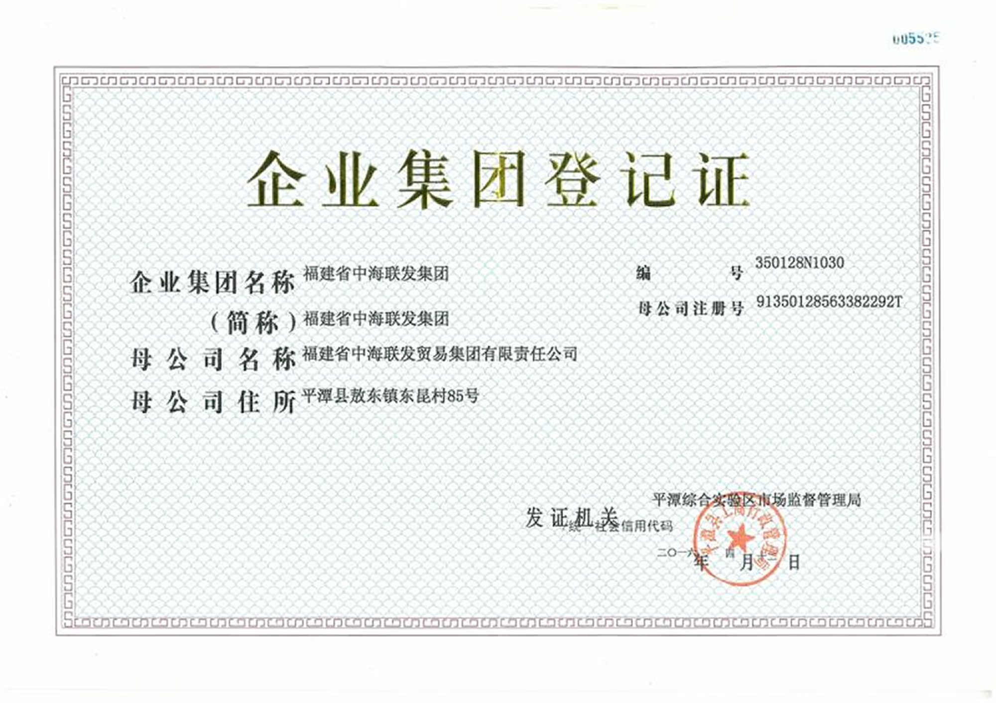 中海聯(lián)發(fā)集團企業(yè)集團登記證