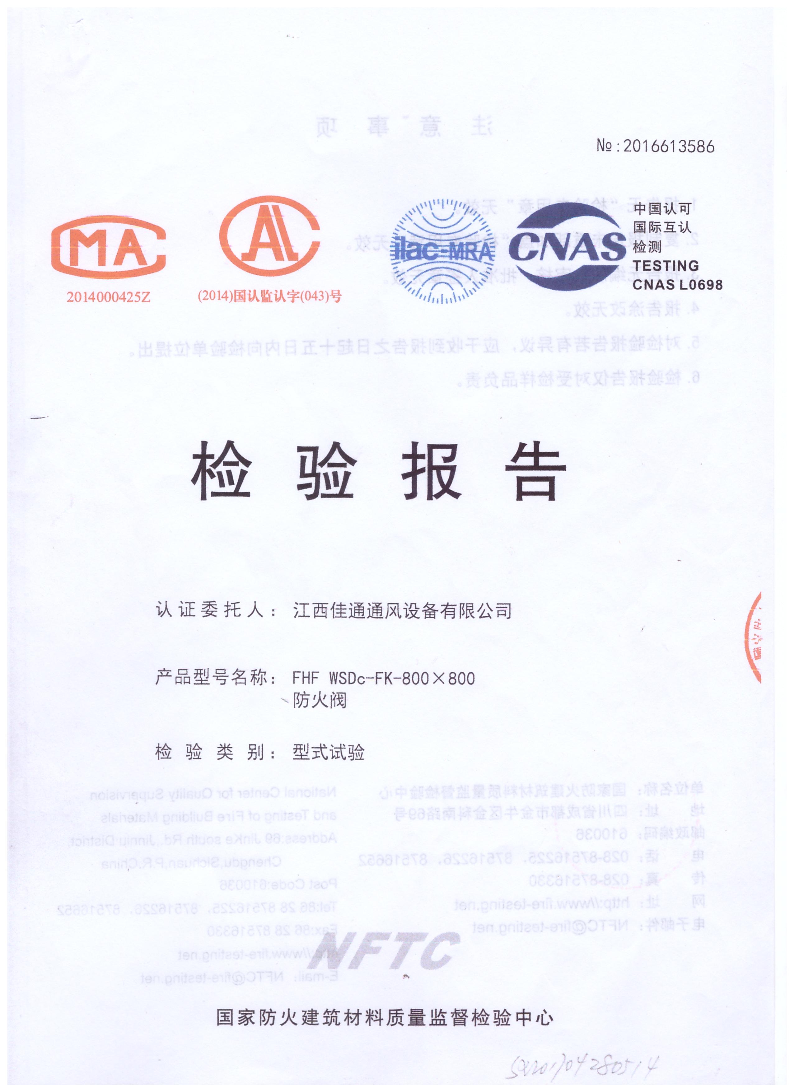 FHF WSDc-FK-800×800 防火閥檢驗(yàn)報(bào)告
