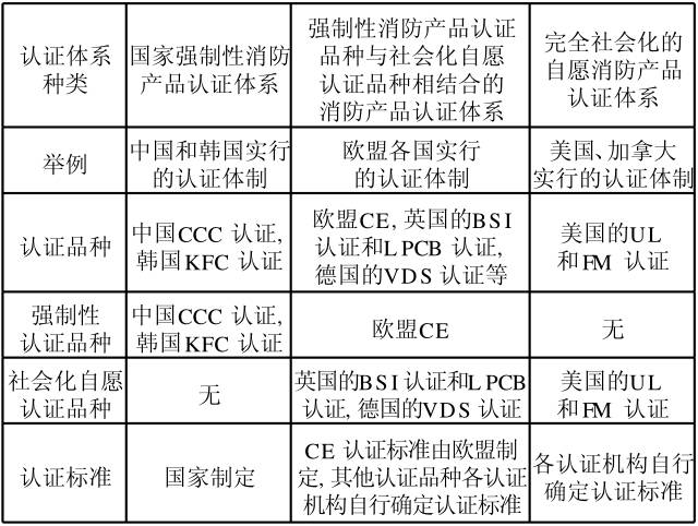我國與世界各國主要消防產(chǎn)品認(rèn)證體制及認(rèn)證體系對比