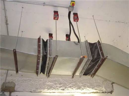 9、閥門等部件要與風管同時組對一起吊裝,調(diào)節(jié)閥等安裝在便于操作位置,防火閥是系統(tǒng)安全裝置,有水平、垂直、左、右式區(qū)別,安裝時不得弄錯,為防止易熔片脫落,安裝時格外小心,當安裝在垂直氣流風道中的防火閥時,易熔片一端必須向關(guān)閉方向傾斜5度。