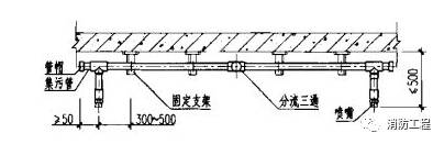 (2)管道末端采用防晃支架固定,支架與末端噴嘴問的距離不大于500mm。