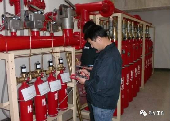 ⑵在檢測過程中,要確保氣體滅火系統(tǒng)保護區(qū)安全。進行定期氣體滅火系統(tǒng)氣瓶檢測需將氣瓶拆回企業(yè)(廠家)進行,在此期間對保護區(qū)要有安全措施。如:由檢測企業(yè)提供備瓶,安裝調(diào)試,能正常使用;氣體滅火系統(tǒng)的氣瓶具備100%備瓶條件的,可采用一次檢測50%的方式,進行輪檢,但在此期間要24小時有人值守,確保安全。