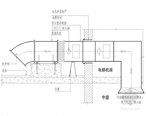 1、消防排煙風(fēng)機應(yīng)設(shè)置在專用的風(fēng)機房內(nèi)或室外屋面上,風(fēng)機房應(yīng)采用耐火極限不低于2.0h的隔墻和1.5h的樓板及甲級防火門與其它部位隔開。