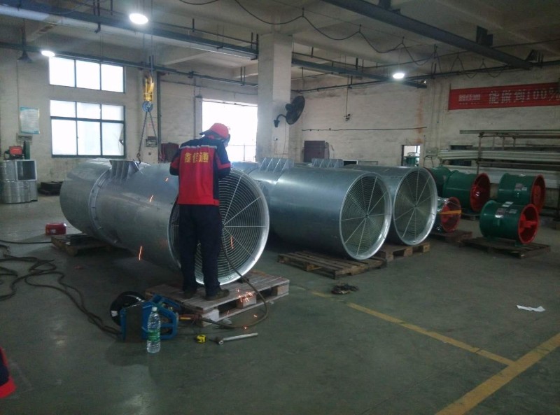 機殼的制造精度應符合有關規(guī)范的規(guī)定,機殼內(nèi)電機支座應有足夠的強度與剛度,能承受運轉產(chǎn)生的動負荷,其高度應保持電機軸心與機殼中心一致。軸流風機機殼應進行熱鍍鋅處理,熱鍍鋅層平均厚度應不低于70μm。