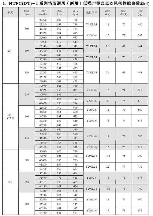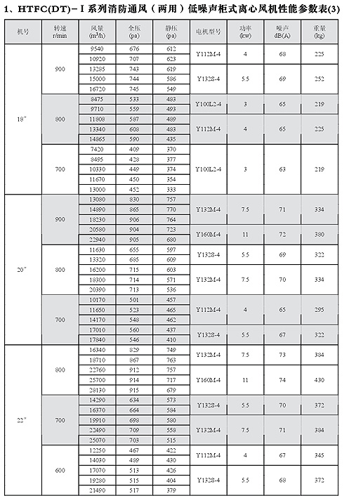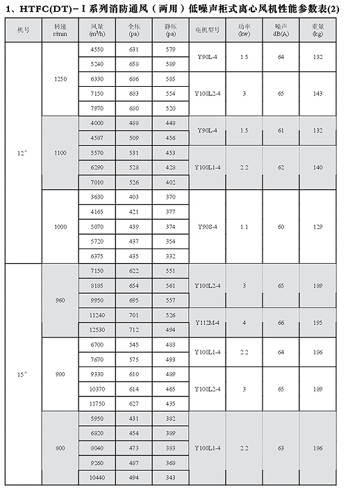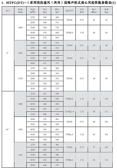 HTFC(DT)-I消防低噪聲柜式離心風機性能參數(shù)