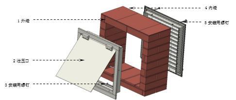 工作原理:當(dāng)滅火劑噴放時(shí)防護(hù)區(qū)內(nèi)壓達(dá)到開啟值(1100Pa±50Pa)時(shí),氣壓推動(dòng)門板并克服磁鐵吸力,在鉸鏈作用下轉(zhuǎn)動(dòng)開啟。