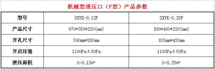 機械型泄壓口裝置主要由殼體、扇葉、機械裝置等組成。泄壓口安裝在建筑內(nèi)墻上,平時關(guān)閉,當(dāng)發(fā)生火情滅火系統(tǒng)釋放滅火劑時滅火區(qū)域氣壓升高,泄壓口扇葉內(nèi)外形成氣壓差,當(dāng)達(dá)到開啟值時即推動扇葉開啟。開啟后滅火區(qū)域氣壓降低,當(dāng)小于開啟值時扇葉自動關(guān)閉,即能維持滅火區(qū)域一定的滅火濃度又保護維護結(jié)構(gòu)免遭破壞。按照規(guī)范要求:不同建筑空間需要不同泄壓面積的泄壓口,可根據(jù)滅火區(qū)域維護結(jié)構(gòu)的耐壓強度及滅火劑的噴射速率與特定的系數(shù)計算出泄壓口面積,通過計算出來的泄壓面積選擇相應(yīng)規(guī)格的泄壓口來滿足工程上的需要,從而保證了公司泄壓口的通用性。