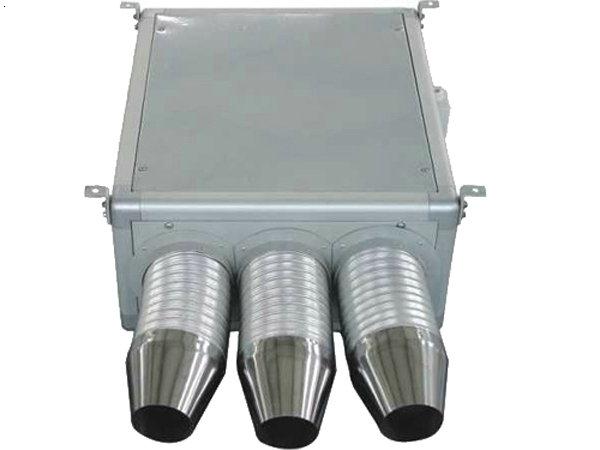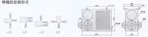 導(dǎo)管臥式誘導(dǎo)風(fēng)機(jī)由離心式通風(fēng)機(jī)、消聲機(jī)箱、三種以下導(dǎo)管組成。回轉(zhuǎn)角度<45°,導(dǎo)管長=400mm,Φ80×3,Φ100×2,Φ140×1,主要特點(diǎn):氣流導(dǎo)向準(zhǔn)確,噴射間距遠(yuǎn),接力傳遞卷吸量大。